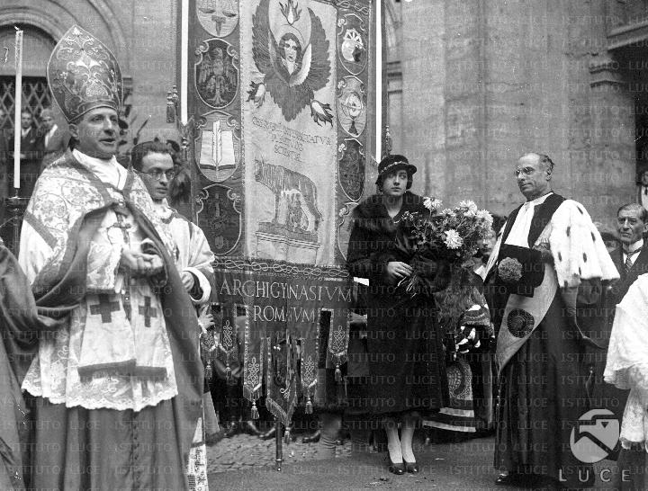 [8]http://fondoluce.archivioluce.com/LuceUnesco/reparto-attualita/scheda/foto/IL0010029734/12/La-principessa-Maria-di-Savoia-ripresa-accanto-al-gonfalone-dellateneo-romano-nel-cortile-di-S-Ivo-alla-Sapienza-durante-la-cerimonia-di-benedizione-dellinsegna-universitaria.html?descrizione=gonfalone università